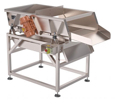 Posizionato prima del tavolo selezione o di altra macchina destinata alla lavorazione delle uve, il TV2 permette di dosare e distribuire l'uva in maniera uniforme favorendo la cernita del prodotto. L'avanzamento dell'uva avviene grazie alla vibrazione della tramoggia superiore ottenuta attraverso l’azione combinata di due motovibratori ad eccentricità regolabile. Il dosaggio può essere regolato anche alzando o abbassando la saracinesca all’interno della tramoggia.