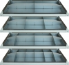 - Divisori smontabili rapidamente (solo per piano incassato) in modo da ottenere da 4 a 12 scomparti.