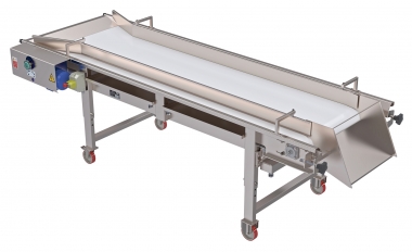 O tapete transportador é fabricado em PVC próprio para o contacto com alimentos.