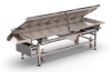 The ruined or unripe bunches, leaves and other foreign bodies larger than the slots, can be separated manually. In the part underneath the table has a grid with small slotted holes so that the juice can be recovered by a special tank equipped with a garolla or other fittings on request. At the exit of the table, the solid waste they are thrown in a manual unloading drawer. The cleaning of the machine is facilitated by a special support that allows the upper slotted table to be lifted once the appropriate lever closures have been released.